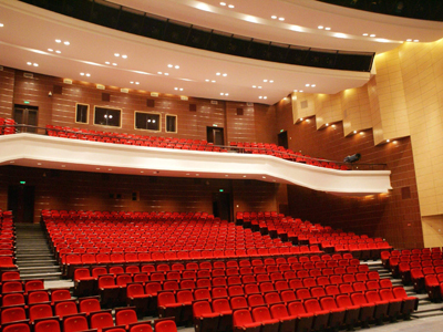 本劇場(chǎng)內(nèi)部平面為長(zhǎng)方形,頂棚為梯坡狀,建筑造型大方、漂亮。在原影劇院的基礎(chǔ)上改造而成。觀眾廳有效容積:5600m3,總表面積:2426m2,滿場(chǎng)觀眾數(shù):780人,每座所占有效容積為7.2m3。舞臺(tái)有效容積:8470m3,總表面積:2420m2,
